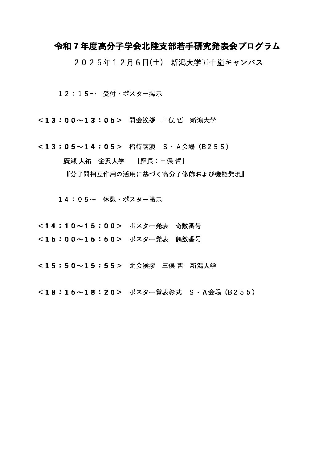 • 第74回高分子学会北陸支部研究発表会プログラム
