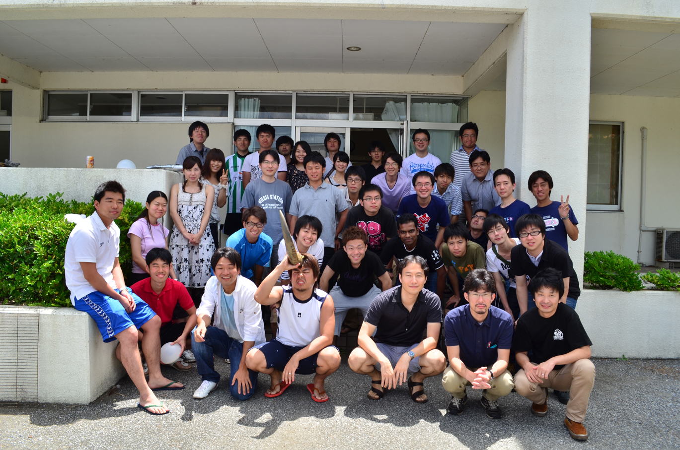 研究室毎に発表をして頂きます。内容は自己紹介、研究室紹介、自身の研究紹介など何でも構いません。パワーポイントを利用するつもりで用意してください。パソコンを持参されない場合はUSBなどのメディアにファイルを入れてきてください。