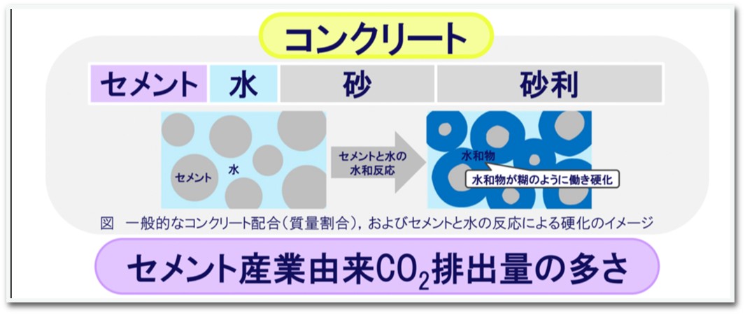 セメントは製造工程で多量のをCO2排出します。